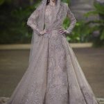 The show notes referenced Lilah Wingfield, an Anglo-Irish noblewoman who recorded her travels to Delhi and Udaipur in 1911, when Victorian silhouettes were yielding to the Edwardian period. Saab’s opening looks, with ruffled high necks, tight sleeves and tiers of frothy lace, recall the photo of Winfield in the show program, a small hawk perched on her wrist.