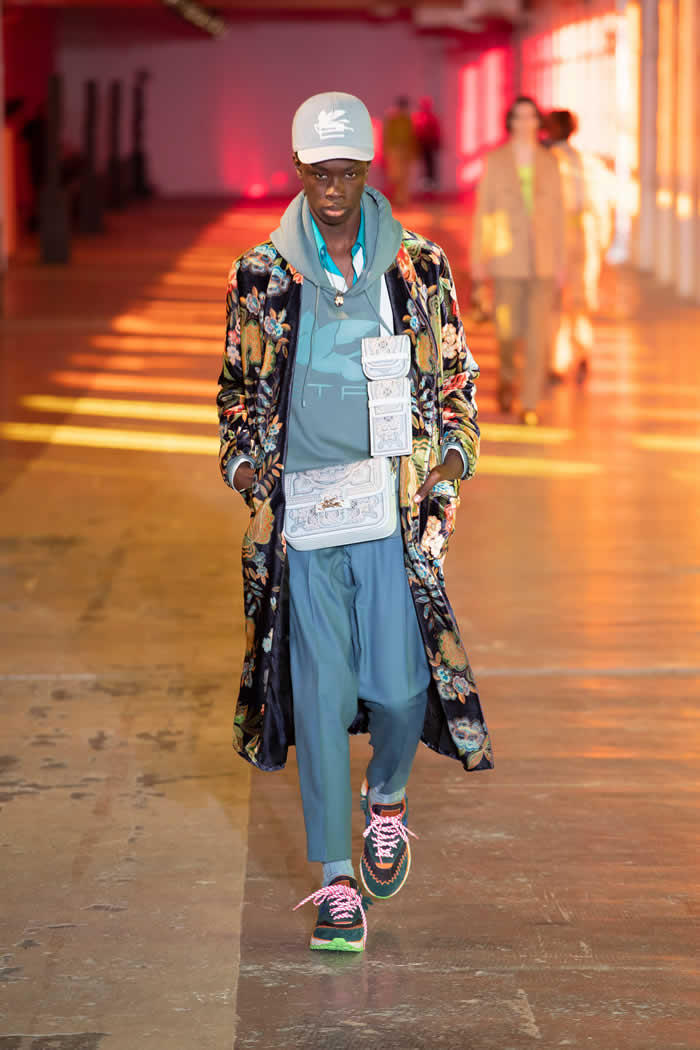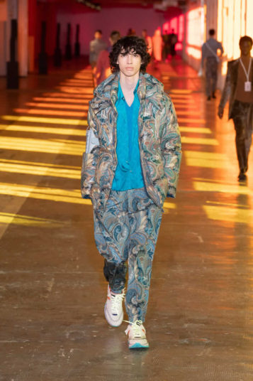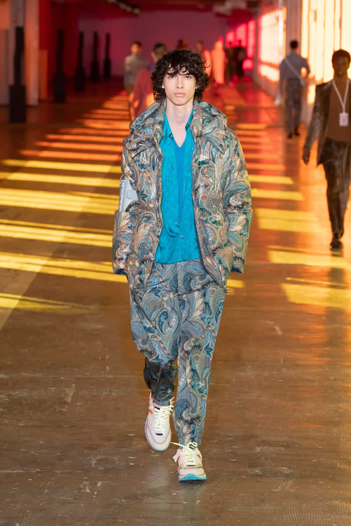 Speaking just before this digital presentation was filmed, Etro said: “I played with what we did with our wardrobes; clearing out, looking again, rediscovering, mixing things together, cleaning up… This helped me realize what the moment is—it’s an in and out time. I think [in the future] there will be a strong instinct to express yourself individually; to be your own stylist, be your own designer.”