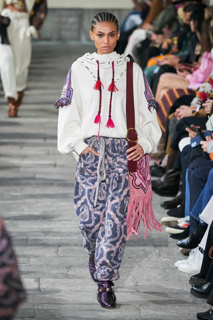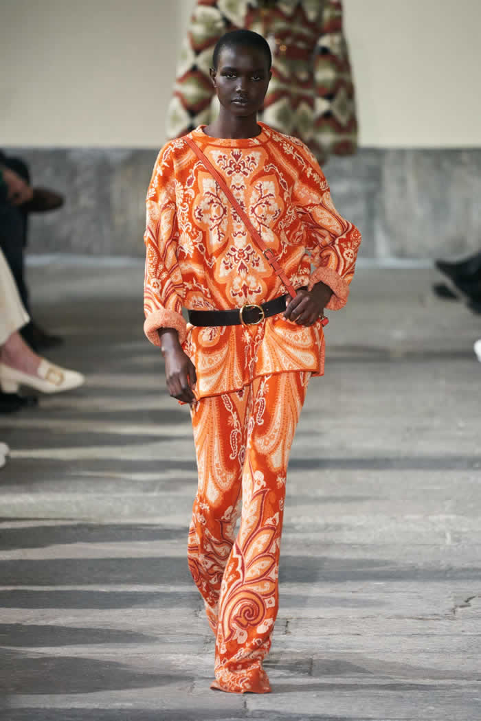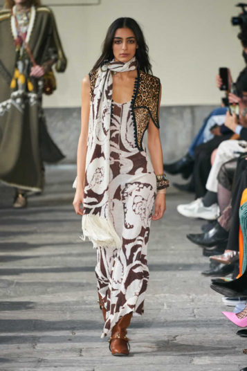 With Etro’s heritage looping back via its family-founded roots in Italy during the hippie late ’60s, to a style of shawl named after a Scottish mill town that made a massive 19th-century British Colonial fashion business out of appropriating a precious fabric whose culture belongs to Kashmir, on the border of India and Pakistan—the paisley pattern is always the given medium.