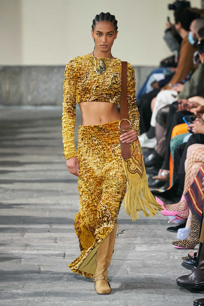 Etro Remix she called it. With its crop tops, bras and bodysuits, and plenty of skin on show, the styling was unmistakably another step along the path of the brand’s intention to reach out to another generation.