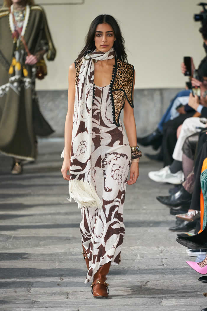Veronica Etro’s conundrum has been to contemporize and reconfigure all of that, expanding the range of what her brand can be without losing its character. “You know, Etro was a lifestyle brand,” she observed backstage. “I think the strength is that it has a strong identity, but at the same time it leaves women open to interpret and to be individual and to personalize. It’s about how we can embrace different personalities—I never wanted to make it homogeneous, to make uniforms.”