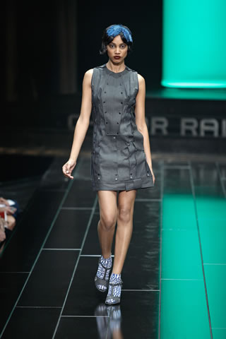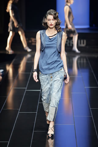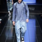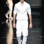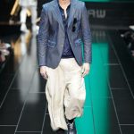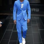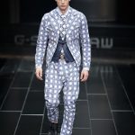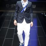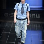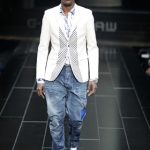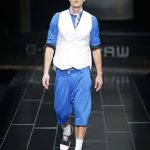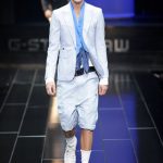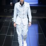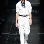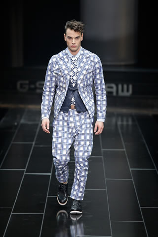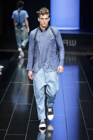 The G-Star atelier demonstrated their signature denim craftsmanship with architectural techniques for pants and sophisticated tailoring for jackets and tops thus creating entirely new silhouettes. Washes encompassed the complete life-cycle of denim, from the darkest raw through bright blues and bleached to non-dyed ecru. The combination of denim with breezily light materials in blues, whites and custom prints showed the unmatched adaptability of G-Star’s core fabric and gave the collection a cool, high-summer feel.