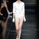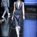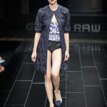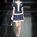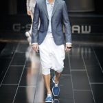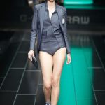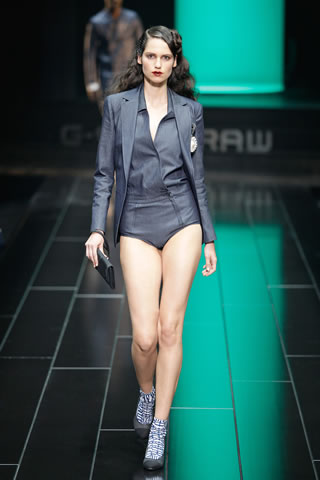 G-Star re-imagined vintage Mediterranean ‘high society’ couture to create a wardrobe with modern classics that exude Raw elegance and can effortlessly carry from day into the evening. For women the brand presented a feminine yet powerful and self assured look with elegant dresses, luxury beachwear such as high-waisted bathing suits and hotpants. Key pieces for men were the cropped chino’s and modern classic broad shouldered jackets. The extremely low loose NY Raw Structor Pant that was the base of many looks, male and female, is the latest addition to the ongoing line of 3-D jeans silhouettes that started in 1996 with the G-Star Elwood. Paper pattern garments created with ‘moulage’ techniques were another example of the denim craftsmanship G-Star is known for.
