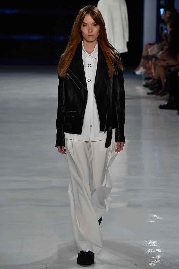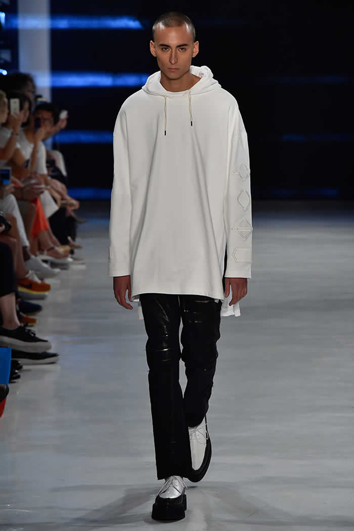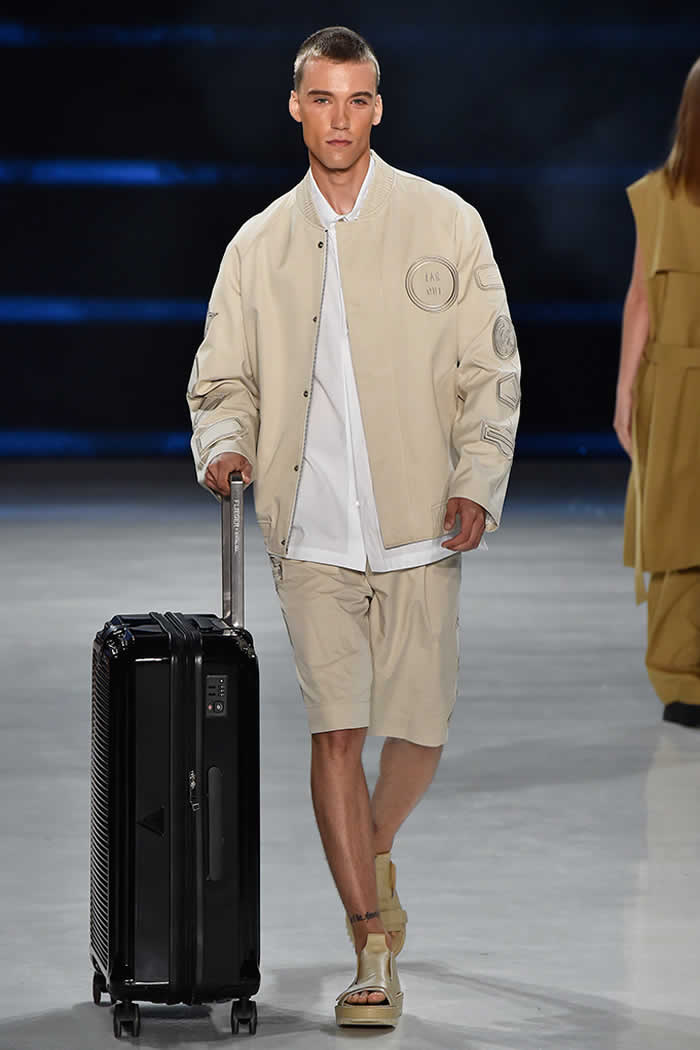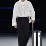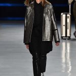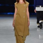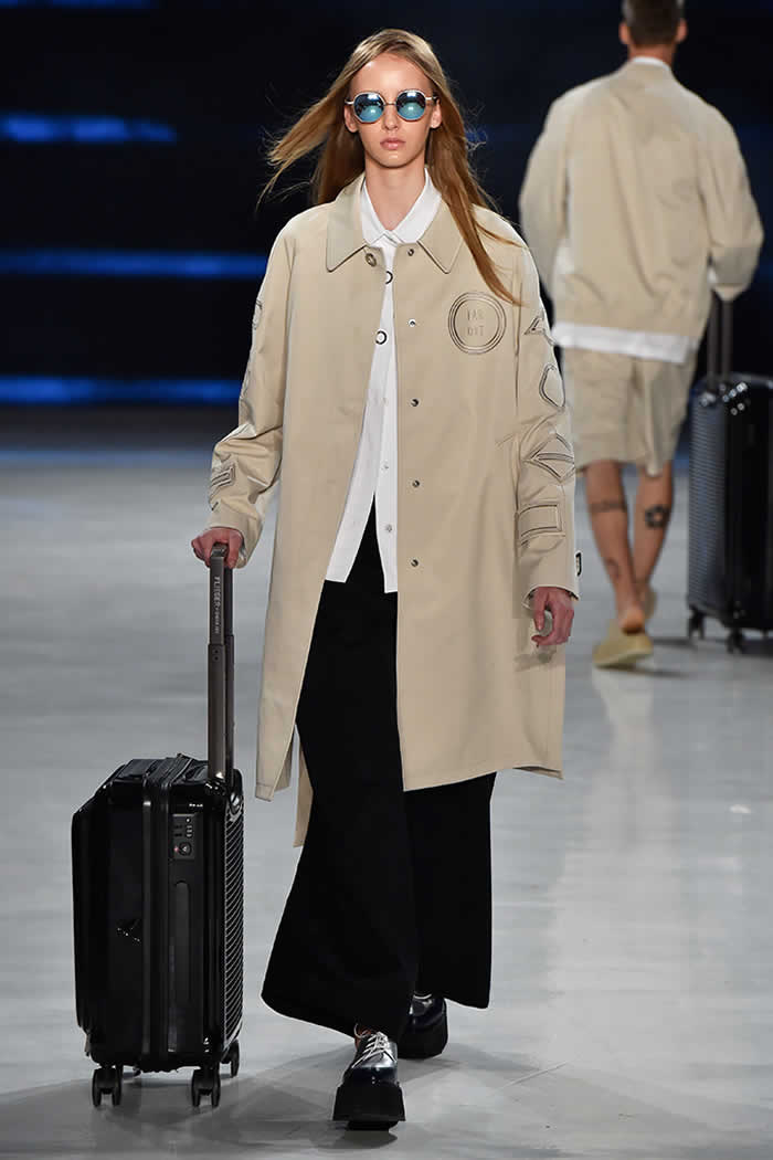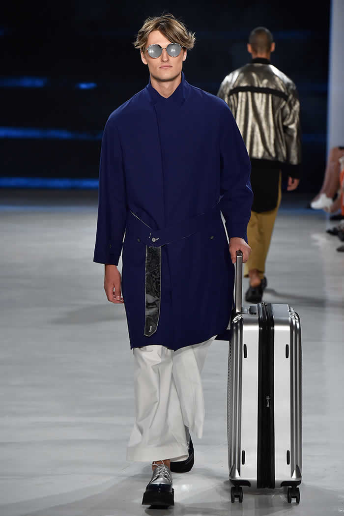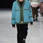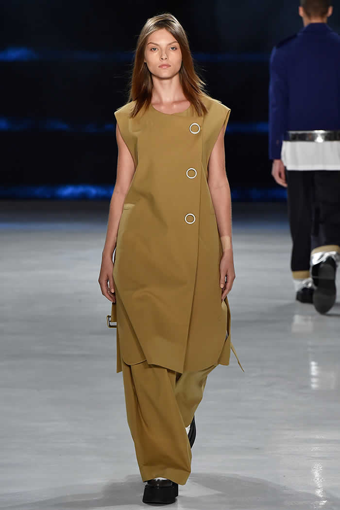 General Idea lightened things up this season, but the brand’s propensity for playing with proportions continued. Designer Bumsuk Choi presented a lineup of elongated shirts and oversized outerwear and flight suits. But he moved away from the dark palette that is a hallmark of the brand, switching it up with tempered hues of beige, pink and aqua-green. Highlights included a metallic oversized bomber with a long black button-down paired with chino khakis, and a nylon black patch-pocket flight suit. The collection felt more wearable as Choi moved toward a more colorful future.