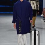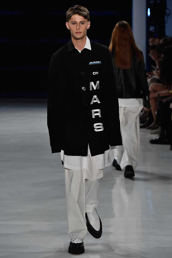 Designer Bumsuk Choi presented a lineup of elongated shirts and oversized outerwear and flight suits.