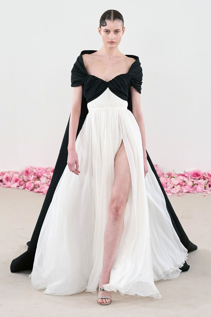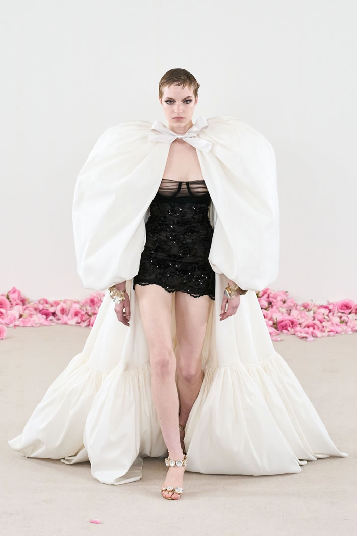 Valli’s exploration of historical references is in line with the broader fashion trend this season, with nods to the wasp-waisted silhouettes of the 1950s and the power shoulders of the 1980s making appearances across various collections. However, his distinct vision, inspired by the timeless elegance of Josephine de Beauharnais, sets his collection apart and creates a captivating sense of nostalgia.