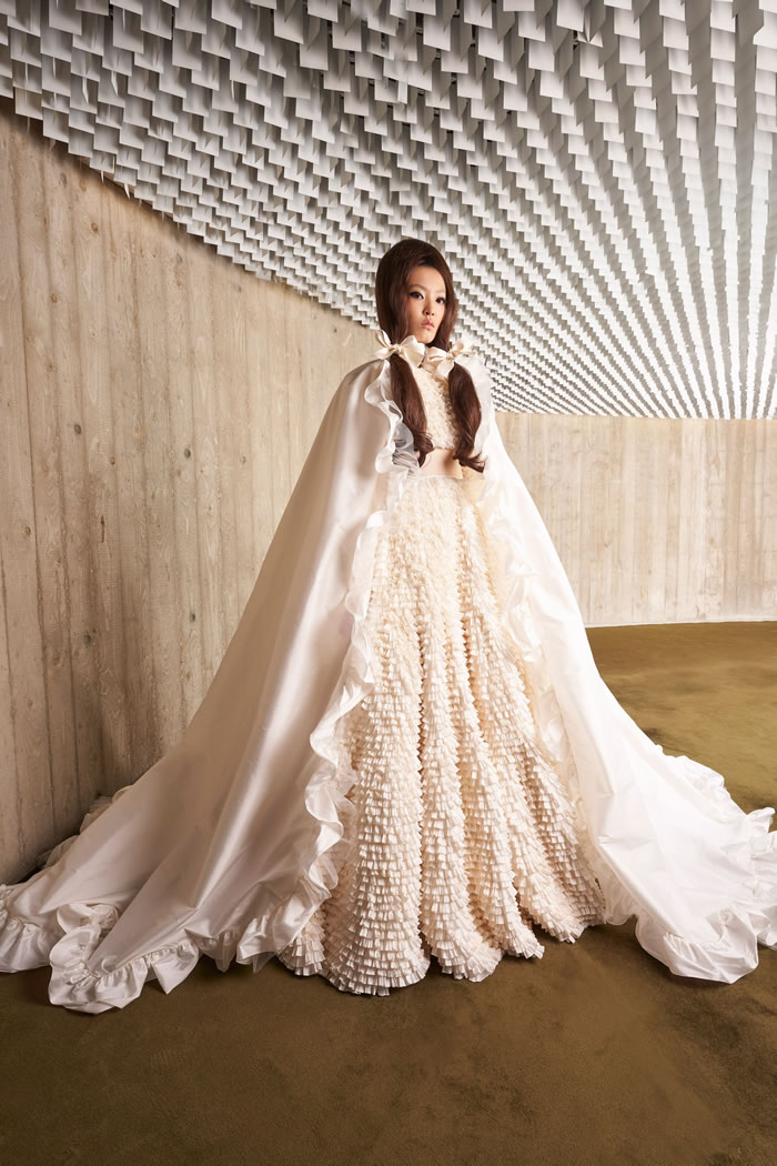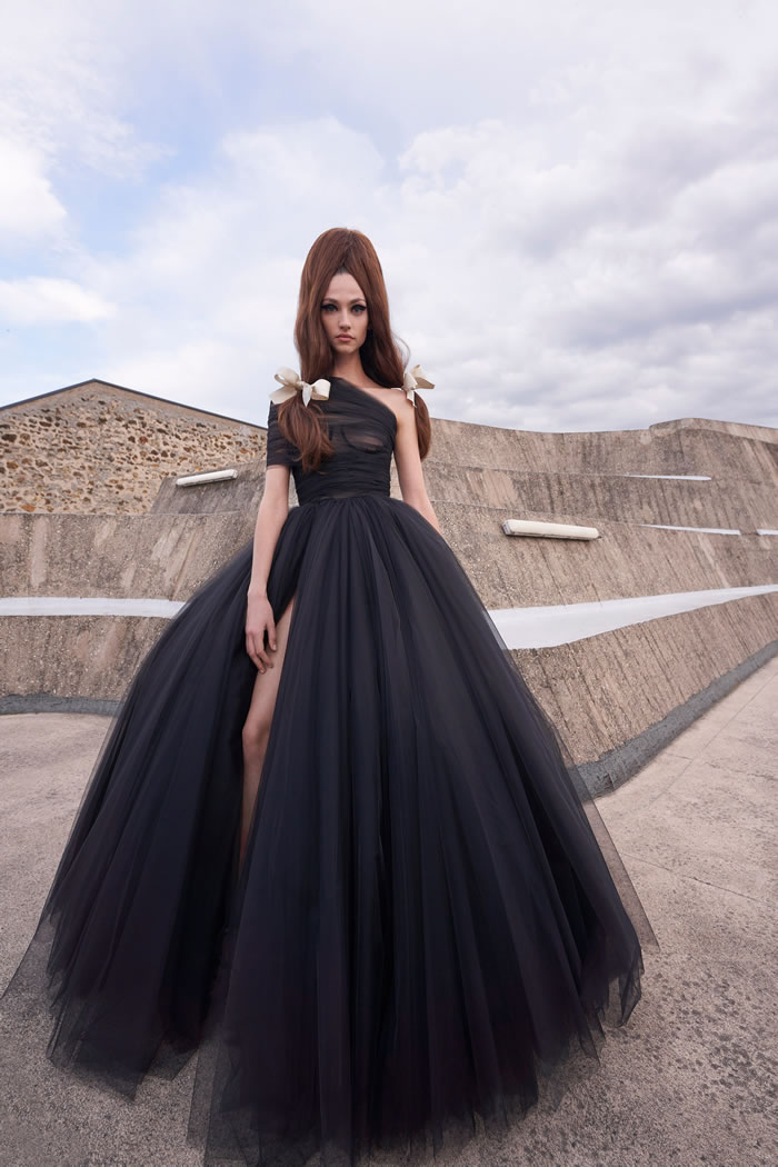 Being back in his crisply lit couture rooms, surrounded by tulle follies and Baudelairean vampire capes, you kind of felt like Emily in Paris yourself. Or, even better: the original Emily, she of Runway Magazine, whose dreams of the Paris couture shows could easily have fit inside Valli’s salons of plenty.