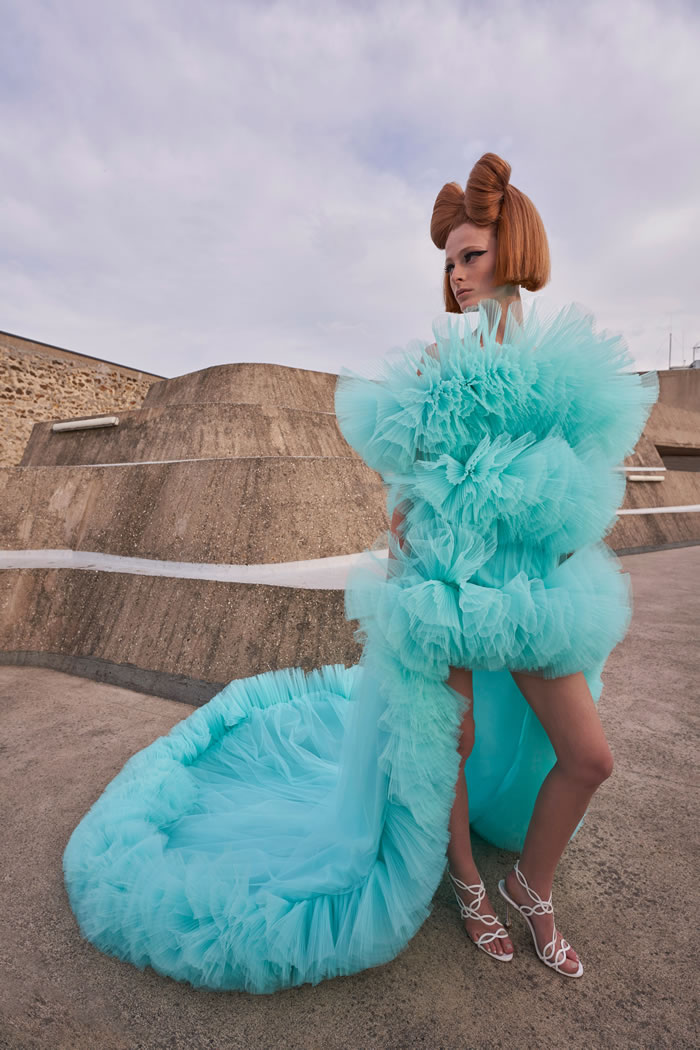 Being back in his crisply lit couture rooms, surrounded by tulle follies and Baudelairean vampire capes, you kind of felt like Emily in Paris yourself. Or, even better: the original Emily, she of Runway Magazine, whose dreams of the Paris couture shows could easily have fit inside Valli’s salons of plenty.