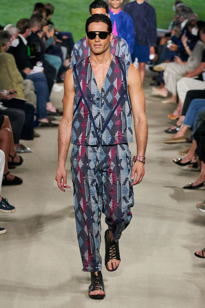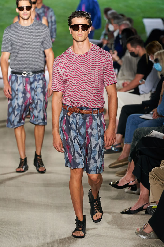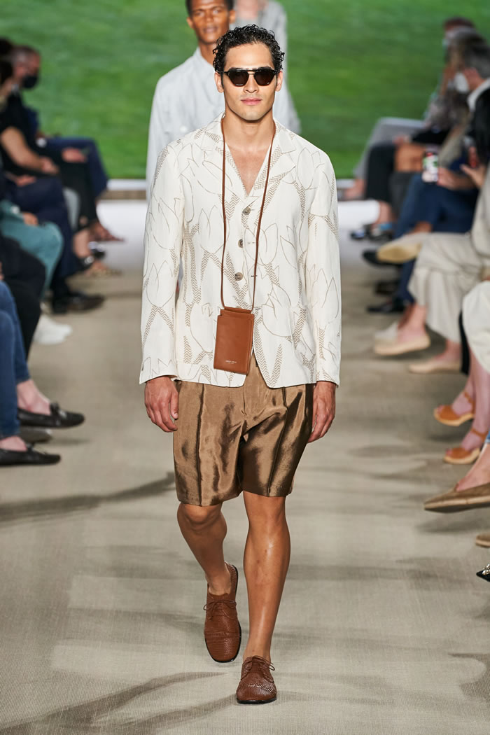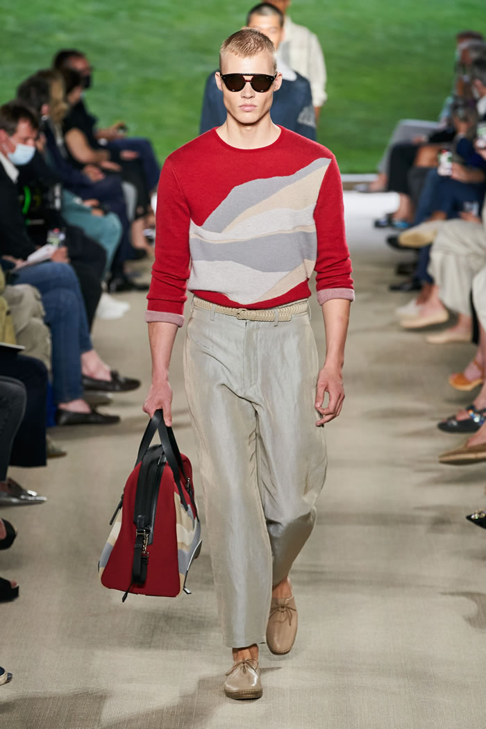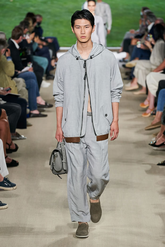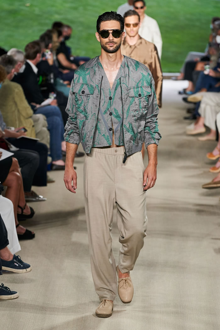 While wardrobe revolutions are perhaps more relative on Armani’s runway—the men’s mini-skorts proposed elsewhere this week were replaced by somewhat roomier shorts here—the pandemic’s impact on the designer is palpable.