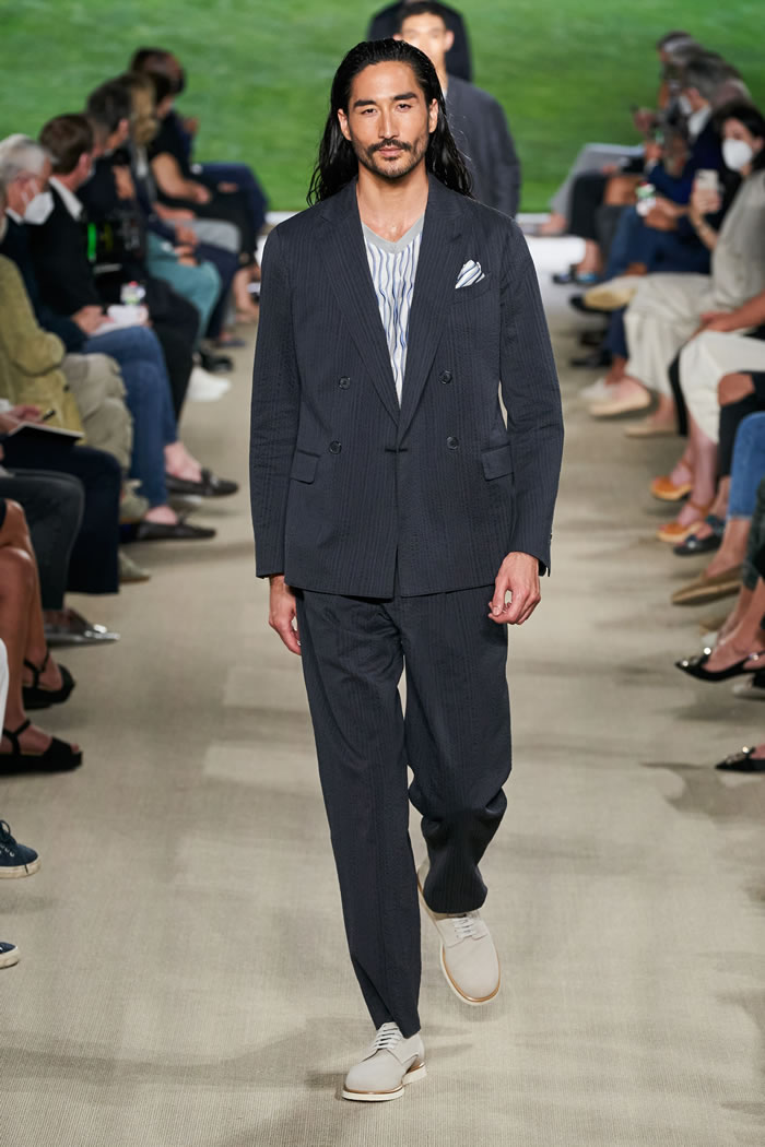 Presenting the collection on a model cast that felt more directional than usual, he deconstructed his formal silhouette and loosened sharp lines with a sense of what ‘sportswear’ looked like before the mid-century. Maybe that’s what formalwear looks like in the 21st?
