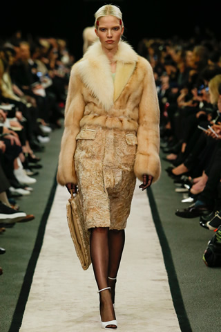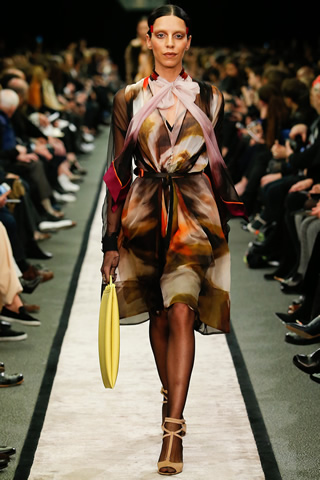 As an alternative, the Givenchy woman is given a more ladylike makeover for autumn, but it is not stifling by any means. Charmeuse Silk blouses with yielding pleats, knee-length dresses of the same material and puffy fur coats dominate the fall preview for this brand.