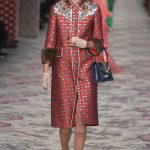 In the midst of all his creative expression, Michele injected plenty of fodder for more commercial consideration. How important are a house’s codes, its DNA? He worked iconography: a Gucci-green lace dress with red striped waist; floral overprinted logo coat; a wealth of diverse bags and shoes that paid archival homage. Yet such show of respect aside, Michele has forced a 180-degree shift in Gucci’s aesthetic. How will the customer – the one who bought Frida Giannini’s clothes – respond? What of the divide between editorial resonance and consumer lust? Gucci may be on the precipice of renewing that old dichotomy.