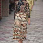 Michele proved stalwart, applying deeply researched motifs – Chinoiserie, Egyptian imagery, every feminine flourish imaginable, even sport and street – into a cohesive collection. A key motif: the Carte de Tendre, a Renaissance map of an imaginary land charting the geography of love. Michele used the work to inform his overarching concept and as a print on a dress, skirt and handbags. Snakes proved another recurring theme, all of their power, seduction and fear factor at seeming odds with the clothes, whether curving across the back of an ornately embroidered dress or slithering up the leg of a suit projecting Tyrolean naivety.