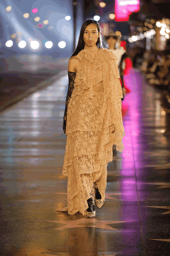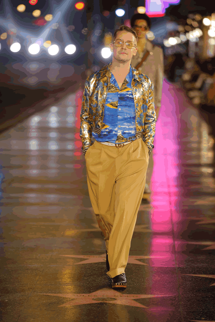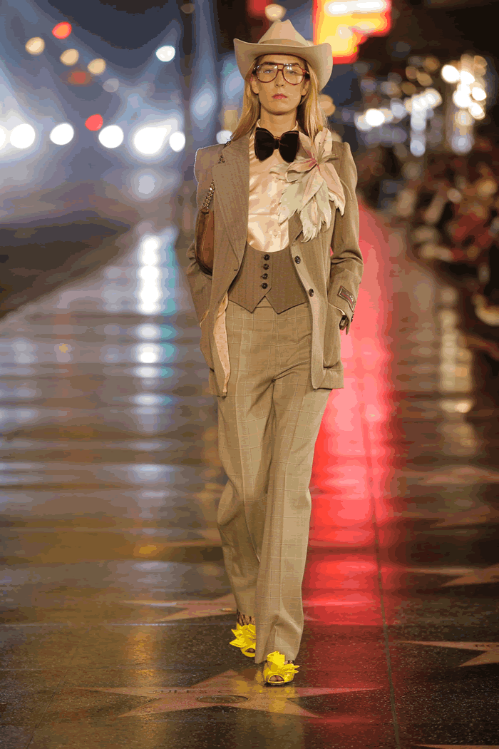 A bevy of designers all went in on monochrome, dreaming up one-hued wonders that felt fresh with unexpected silhouettes. Take MSGM’s baggy low-rise jeans paired with a cropped hoodie and blazer—all in a tennis ball neon. Or consider Chloé’s low-key knit skirt and tank paired with a same-hued marigold coat.