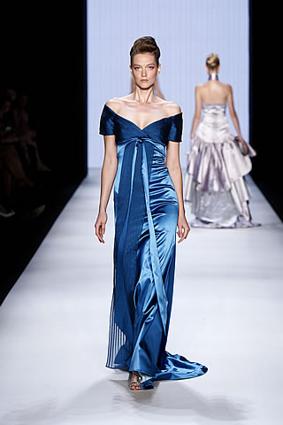 Fashion designer Guido Maria Kretschmer has introduced an astonishing collection of different types of outfits at the Mercedes Benz Fashion week 09. The Fashion assortment includes a variety both for men and women, the suites, maxis, minis, skirts, frocks, etc. the color scheming of the dresses were amazing, mostly were in the combinations of black and white, grey and black, grey and white, etc. But the single colored frocks win the race, as they were simple but elegant; some were with the frills as well. This spring/summer Fashion anthology by Fashion designer Guido Maria Kretschmer at Mercedes Benz Fashion week was held on the 3rd of July, 2009 in Bebelplatz, Berlin, Germany. The turquoise shades and the stylish cuts of the costumes of the Fashion designer Guido Maria Kretschmer grabbed the attention of the audience lovers and audience.