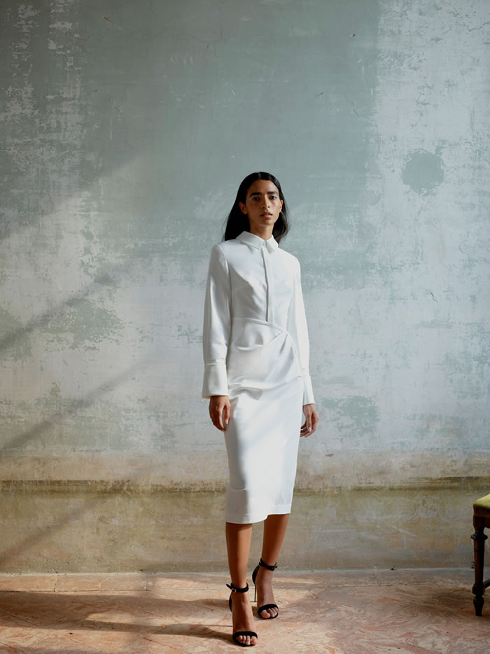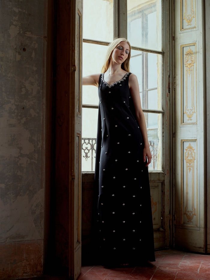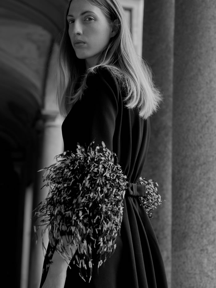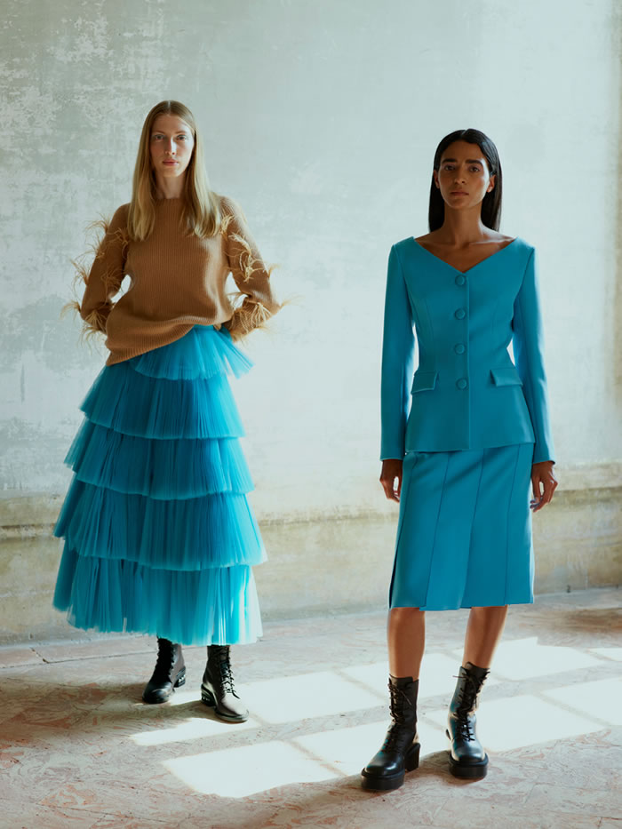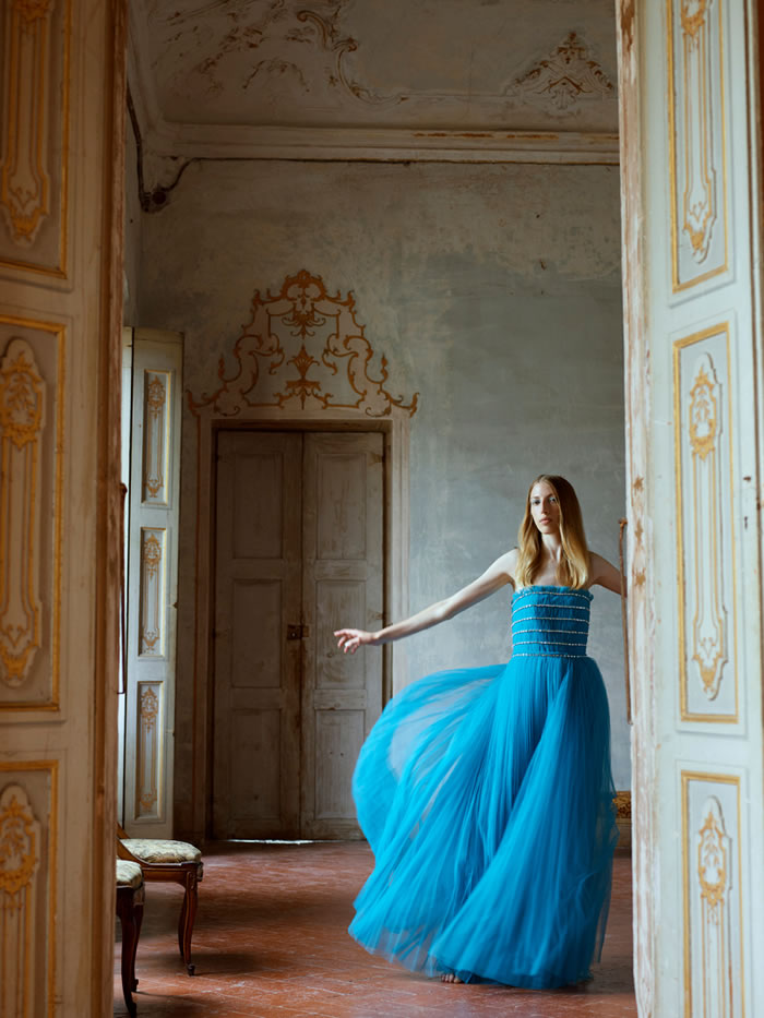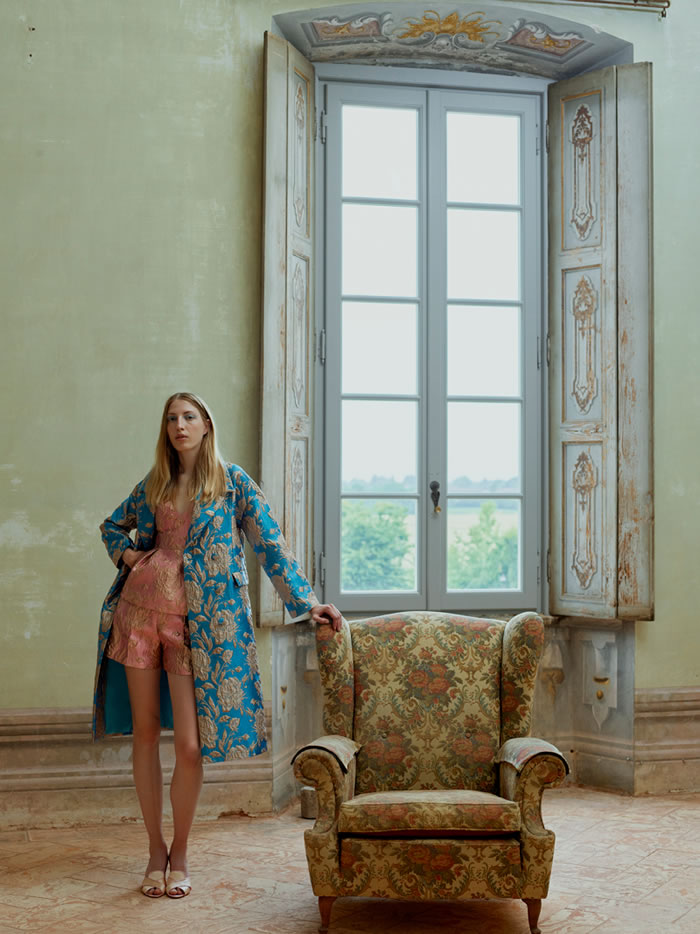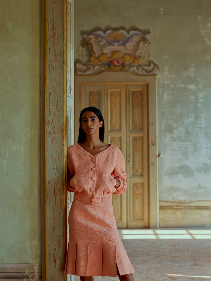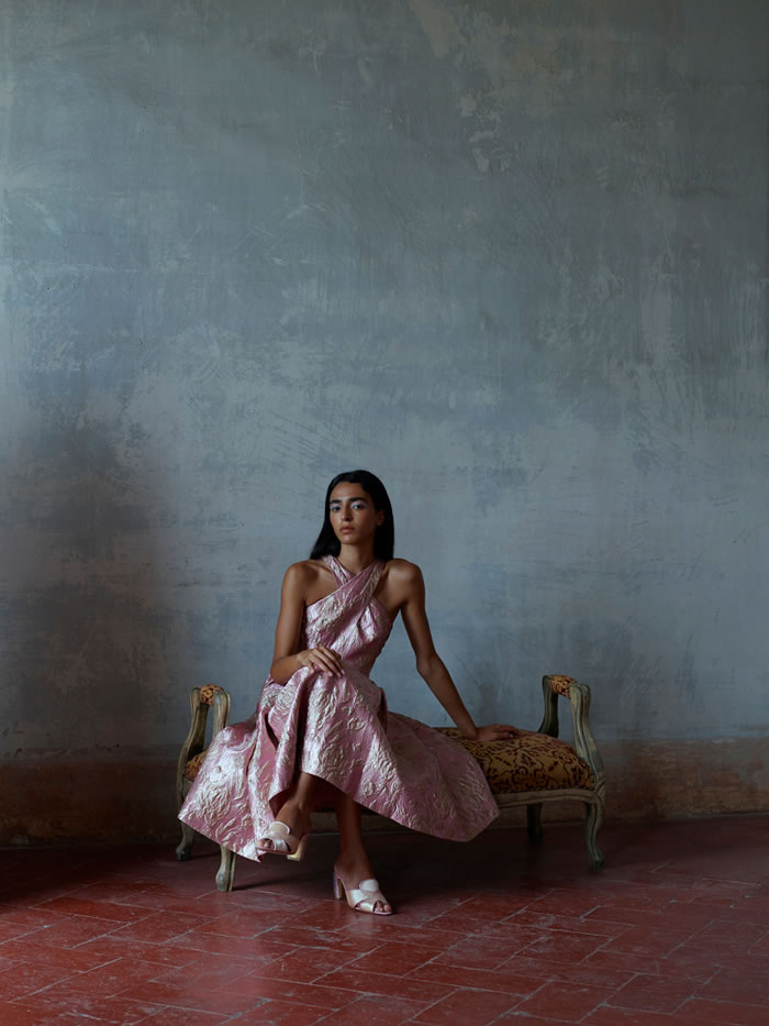 With international travel off the agenda and location scouting difficult, Huishan Zhang tapped into his memories of Italy to come up with the backdrop for his latest collection. He recalled the chalky pastels and baroque splendor of Villa Arconati, just outside Milan, and imagined the sort of woman who would live there today.