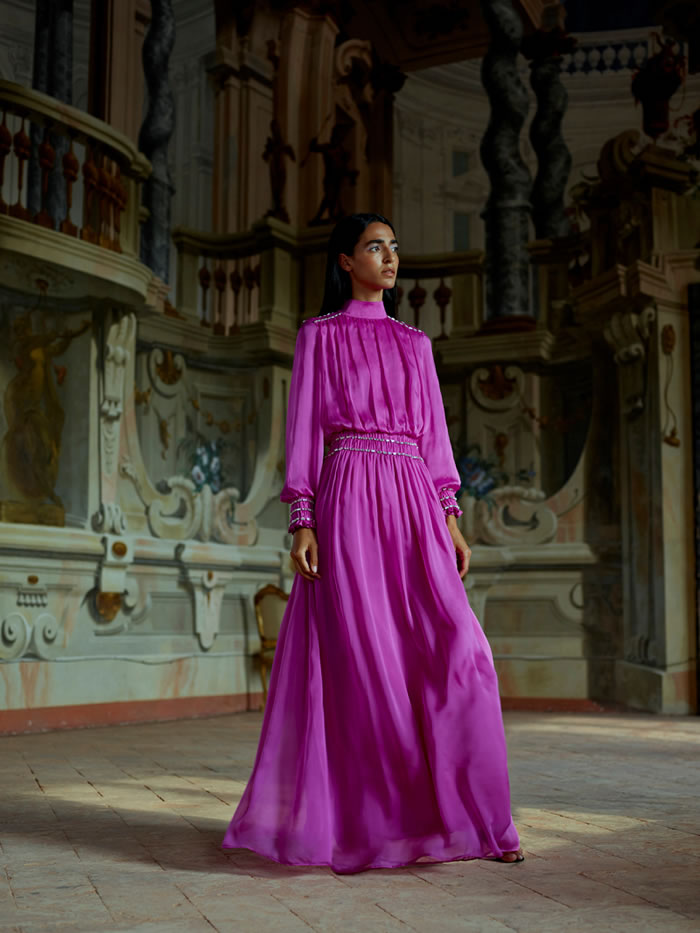 The brand has been doing a roaring trade in “emotional, wow” pieces during lockdown, according to the brand’s managing director Alessia Pasin. Even with nowhere to go, she added, homebound clients have been shopping, and keeping the clothing for better times, which they know are on the way.