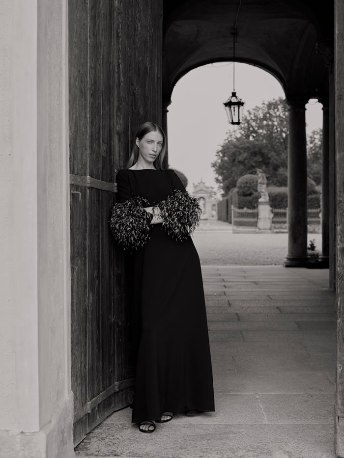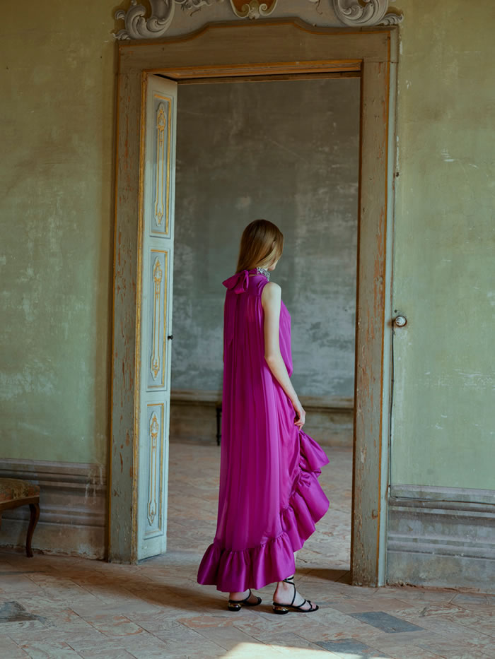 With international travel off the agenda and location scouting difficult, Huishan Zhang tapped into his memories of Italy to come up with the backdrop for his latest collection. He recalled the chalky pastels and baroque splendor of Villa Arconati, just outside Milan, and imagined the sort of woman who would live there today.