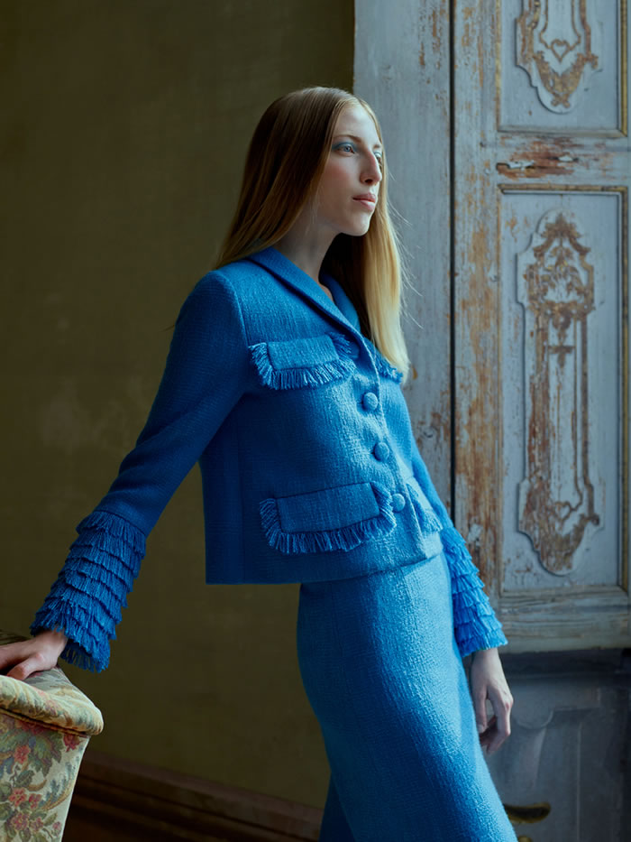 He used the interiors, furniture, gardens and architecture as inspiration for this collection, which was packed with richness in the form of tweed, cashmere and brocade, and a Mediterranean color palette of turquoise, pink, lime and peach.