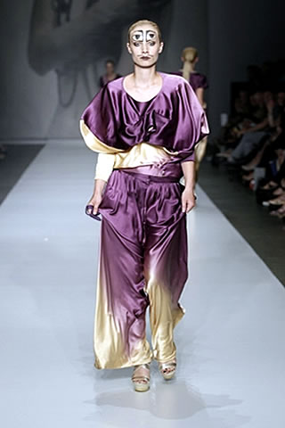 The Individuals fashion show we saw on Thursday was named Some dream of running away to the circus. The show was all about elegant wearable clothes with fun details. After lots of smoke was blown in the air the first girls appeared. They wore dresses, tops and pants in purple and champagne. Some pleats and fringes were nice details and most of the clothes were loose fitting.