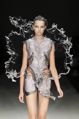 Iris van Herpen started her show with a clip of a naked woman surrounded by splashes of water.