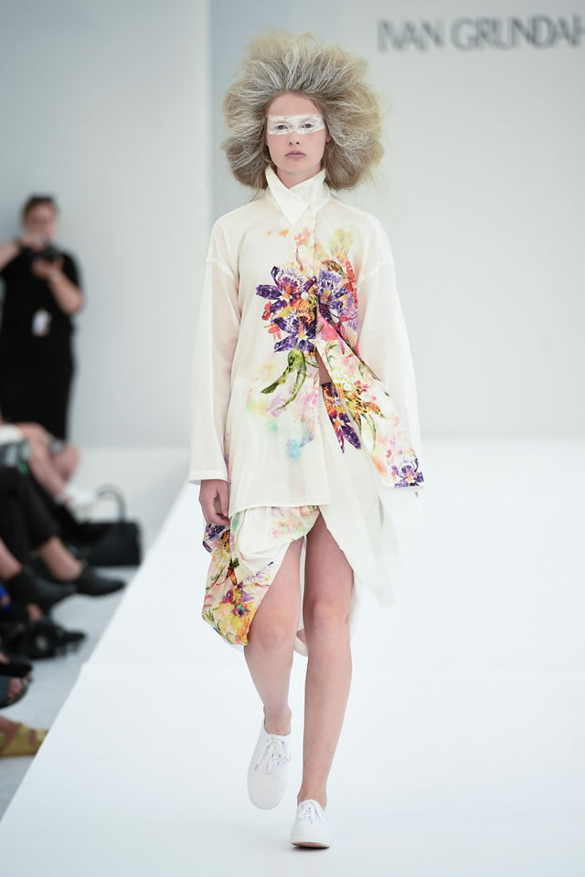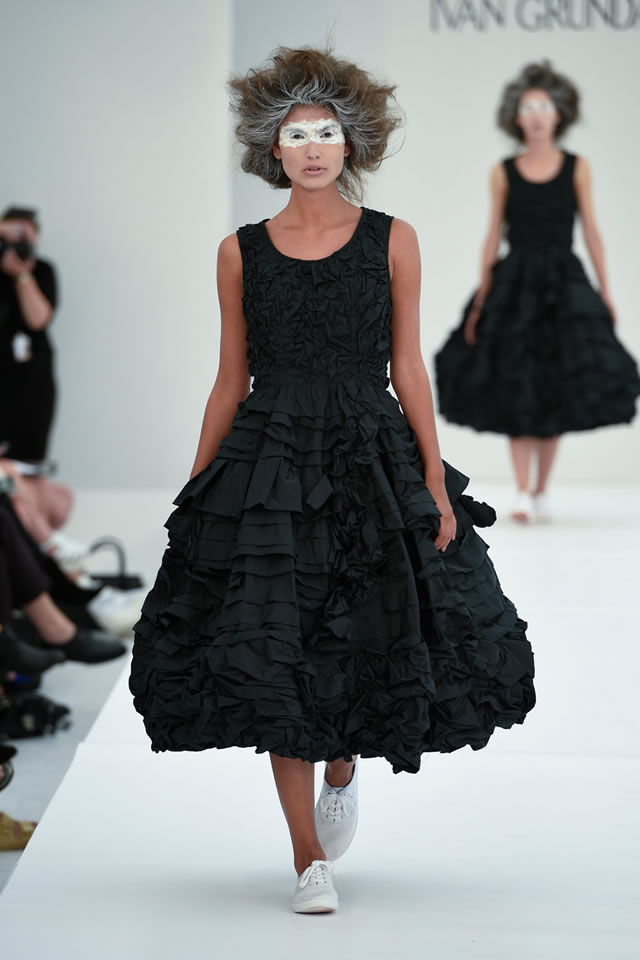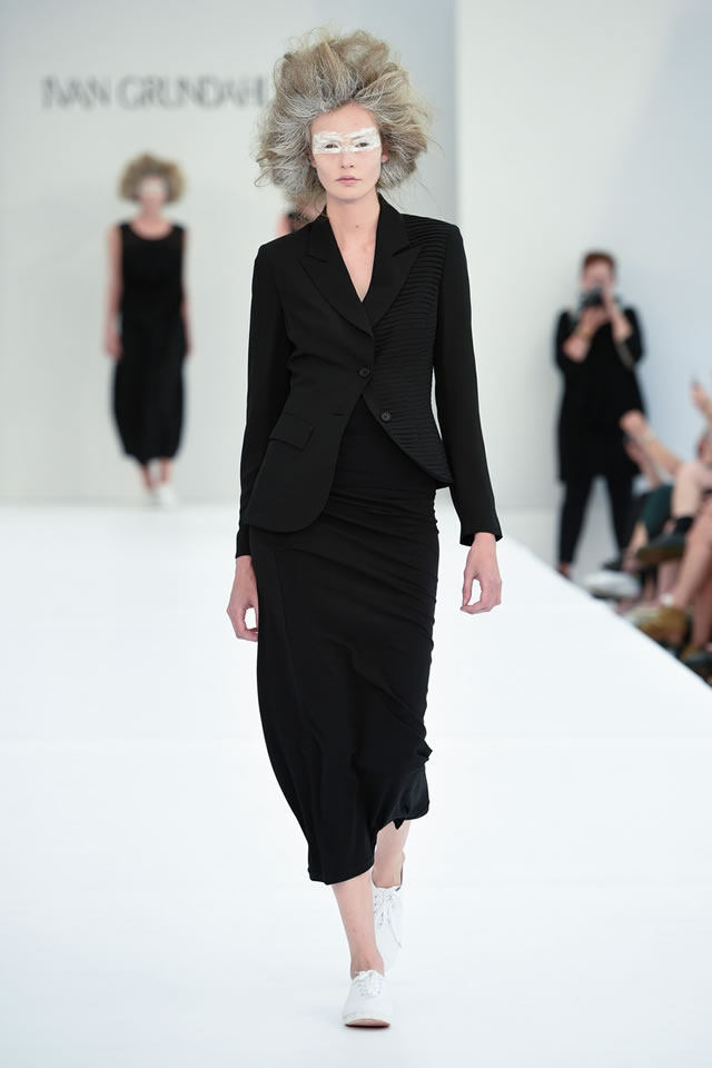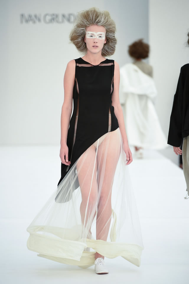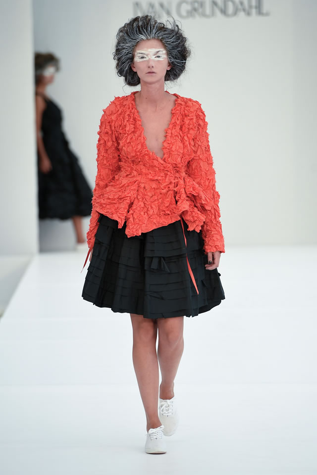 IVAN GRUNDAHL design looks cool, avant-garde and international. In his urban outfits the designer fuses asymmetrical lines, uneven silhouettes, and the clean-cut architectural shapes of Scandinavia. They are sculpted with generous lines and frivolous ruffles showcasing balance, harmony, and freedom of movement.