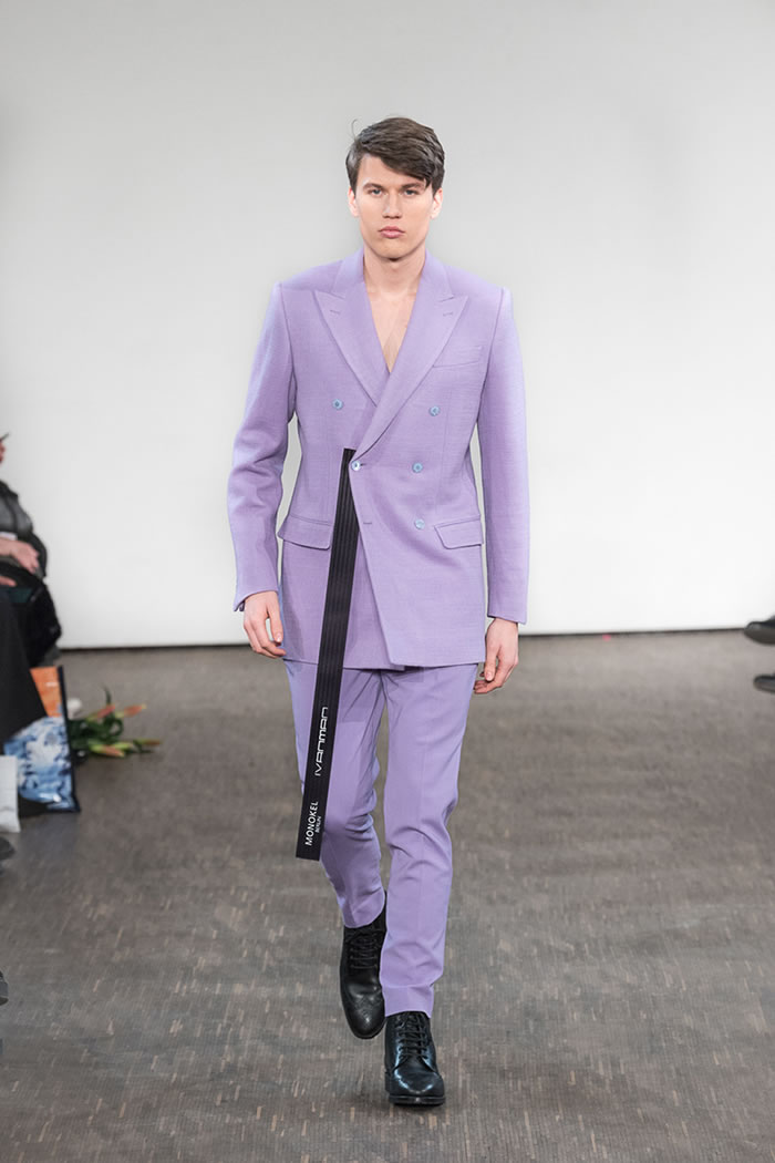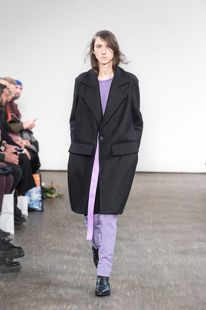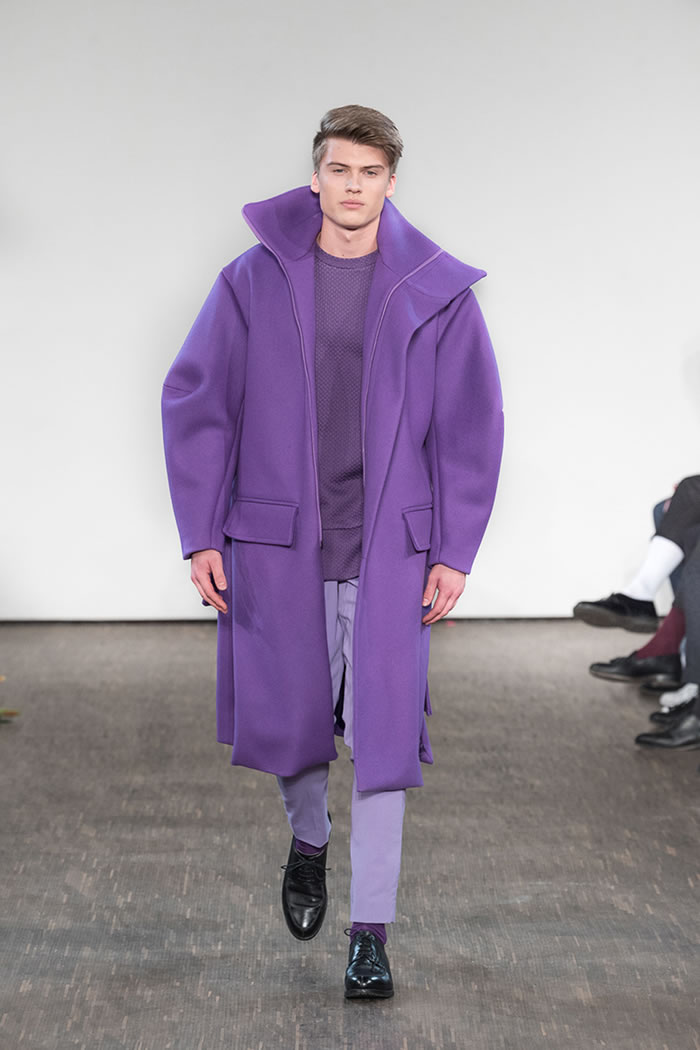 The simple and rough nettle cloth is an important part of the conception now finding itself presented on runway. Colourful lines visualize processing instructions leading to the design. The final products are presented as the result of the creative process and intented outcome. Cashmere meets quality wool, classical lilac and purple shades in combination with oversized looks and A-line shaped silhouettes influence the collection’s character. IVANMAN remains faithful to it’s unique style but reveals a new viewpoint on future’s prospects. Clear and simple lines combine with complex details and strong colours. This autumn and winter contrasts create inspiration and rough elegance.“