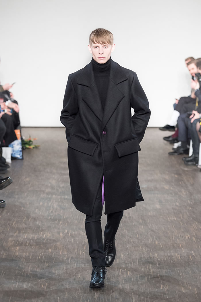 The simple and rough nettle cloth is an important part of the conception now finding itself presented on runway. Colourful lines visualize processing instructions leading to the design. The final products are presented as the result of the creative process and intented outcome. Cashmere meets quality wool, classical lilac and purple shades in combination with oversized looks and A-line shaped silhouettes influence the collection’s character. IVANMAN remains faithful to it’s unique style but reveals a new viewpoint on future’s prospects. Clear and simple lines combine with complex details and strong colours. This autumn and winter contrasts create inspiration and rough elegance.“