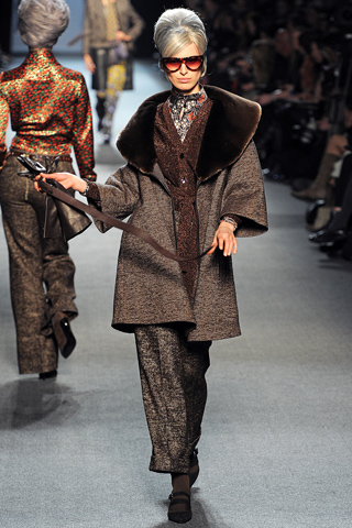 Jean Paul Gaultier, with his ready-to-wear fall collection 2011 fashion show at Paris Fashion Week showed some sparks of sophisticated elderly striptease with his mature beauties coming down the runway while removing off a little piece from her ensemble, may be a shoe or a glove or trench.