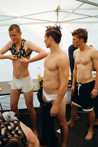 On July 2 Julian Zigerli presented his Spring/Summer 2014 collection "At the End of the World to the Left", a collaboration with German artist Katharina Grosse, at Mercedes-Benz Fashion Week Berlin.