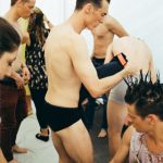 Grosse’s large scale abstract prints were absolutely eye-catching. For some outfits selections of her work were used as prints, for other outfits, in true artistic form, Grosse herself directly applied the spray paint onto white samples later replicated into prints for the collection.