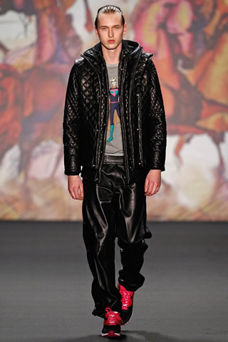 Energetic Berliner Kilian Kerner showed an eclectic, often ungainly mix of sportswear-inspired separates and formal wear. Dresses for women were stiff and slightly dowdy in iridescent leather and heavy satin, while men paraded in quilted track suits and leather jackets. ?