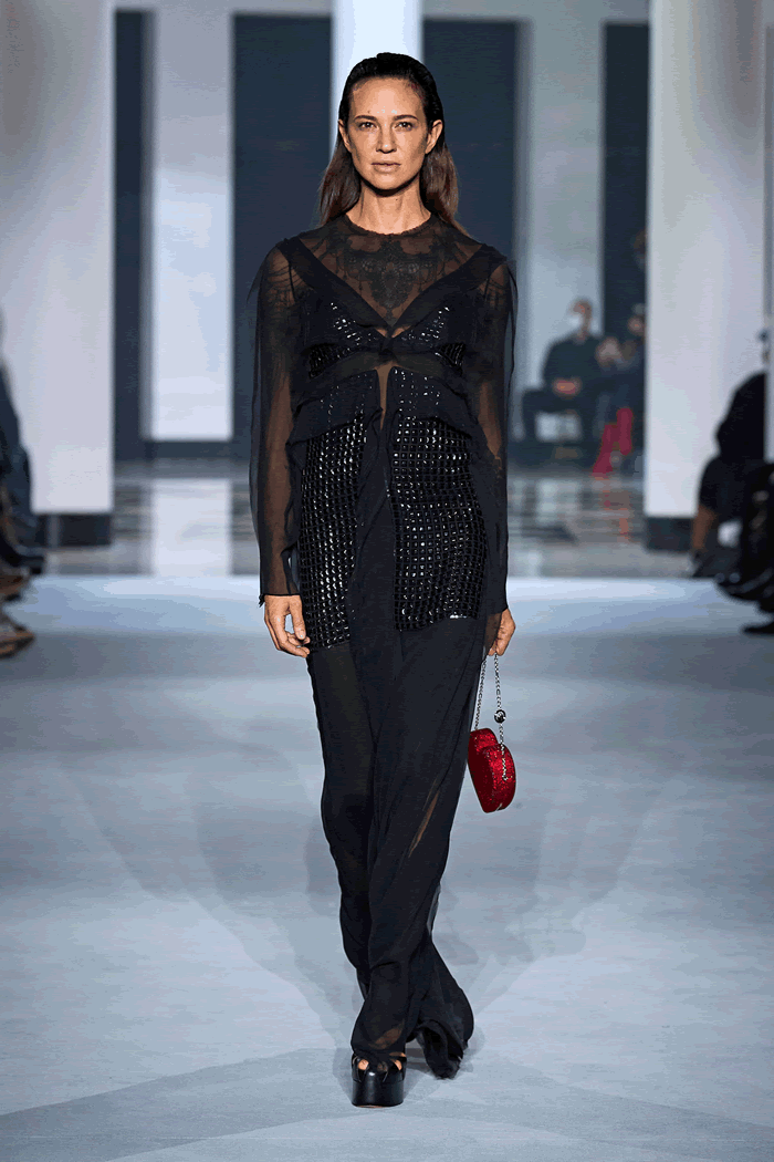“Most of the dresses we sold lately were the strongest ones, like Bella [Hadid]’s Lurex dress from the campaign,” Sialelli explained during a collection preview in his Paris showroom.