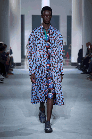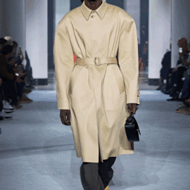 In this case, the broad-shouldered silhouette of the Batman universe drew a Tamara de Lempicka–esque line, which made Sialelli’s Lanvin man feel a little more mature. That feeling was echoed in two beautifully cut trench coats, which hung off the body almost like evening dresses. If Naomi Campbell has her own Bat-Signal lighting up the skies, someone summoned her last night: The supermodel closed the show, wafting through the Salle Pleyel in billowing black chiffon like the Caped Crusader.
