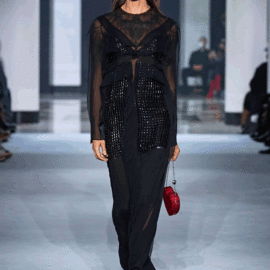 “Most of the dresses we sold lately were the strongest ones, like Bella [Hadid]’s Lurex dress from the campaign,” Sialelli explained during a collection preview in his Paris showroom.
