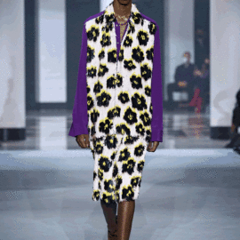 “Most of the customers that come to us are coming to get supported by glamorous, fabulous products. They search for an elevated and more confident version of themselves.” Those facts encouraged him to push the envelope further. In what he called a “bold and joyful and free and unapologetic” proposition, the designer explored Pop-Arty daisy prints, dense tinselling, and motifs from 1940s Batman comics.