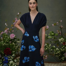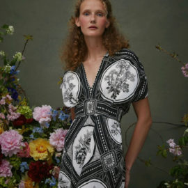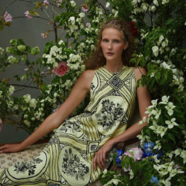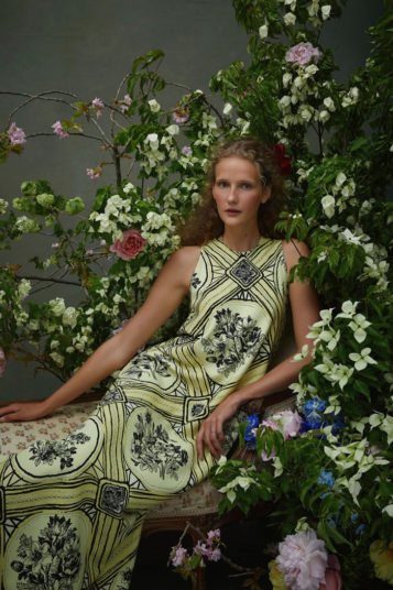 Quote of note: “The whole thing is English Gardens and Catherine the Great,” Rose said during a showroom walk-through of spring. “This is like the ceiling taken from Versailles, done in this medallion pattern and print, that was our version of it — taffeta, gorgeous, really over-the-top.… Everything that’s selling right now, nothing is ‘plain and safe.’ So we’re excited about the fabulous colors.”