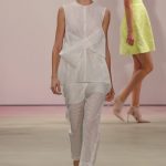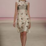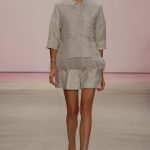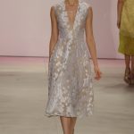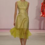 Lela Rose did succeed in making “cute” an acceptable part of her lineup. She dressed up shorts, shaping them in a silver tweed with a matching fringed jacket or in a fluorescent yellow floral jacquard with a simple top. Her best-of-show looks: a deep coral polka-dot fil coup shirtdress, a citron gown with hand-cut floral appliqués and a charming nude organza jumper.