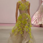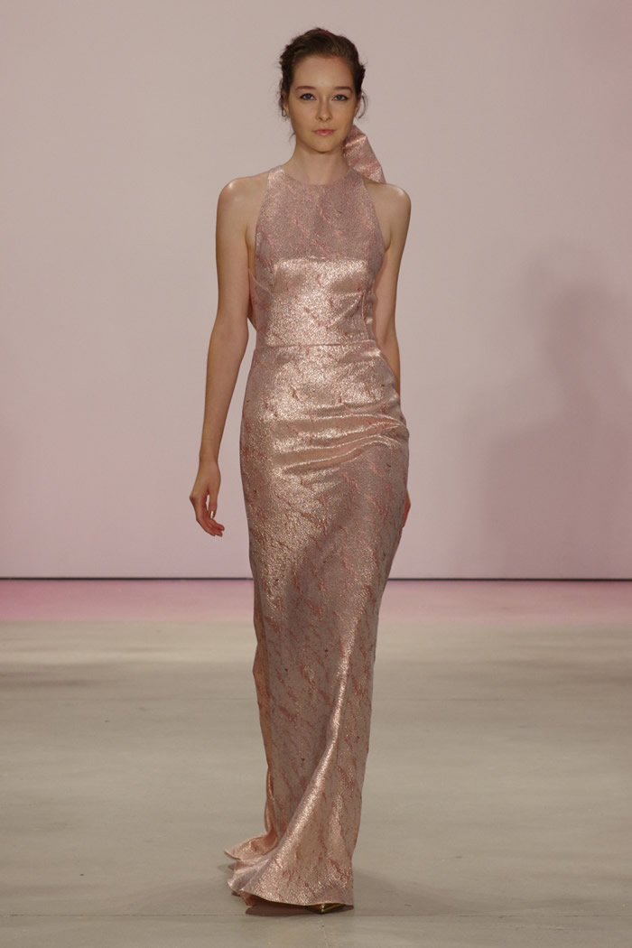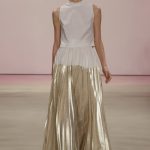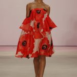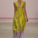 Lela Rose’s spring collection was as bubbly as the designer herself – she even created a ceiling of hanging tulips above the runway. But sometimes all that effusiveness can be a bit overwhelming in clothes. This season, Rose offered a blazing palette, shimmering metallics, hand-cut floral appliqués, magnified floral prints and quirky details. In easy, unfettered shapes it all worked; in more elaborate silhouettes, it often did not.