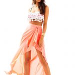 There was a playfulness with tassel embellishments on cropped tops and off-shoulder dresses, and fluidity with ruffled wrap skirts and tie-dye maxidresses.An all-white lace dress could perfectly transition from day to night. “Our goal is to get you from plane to the pool and pool to the party; you just have to change your shoes,” quipped Fain.