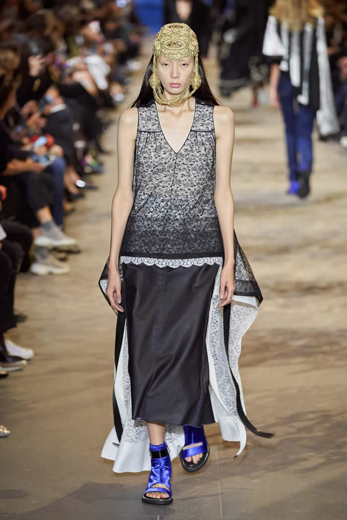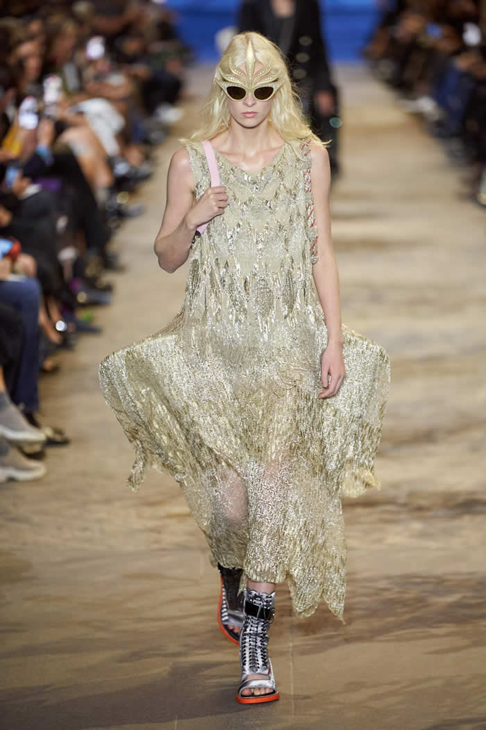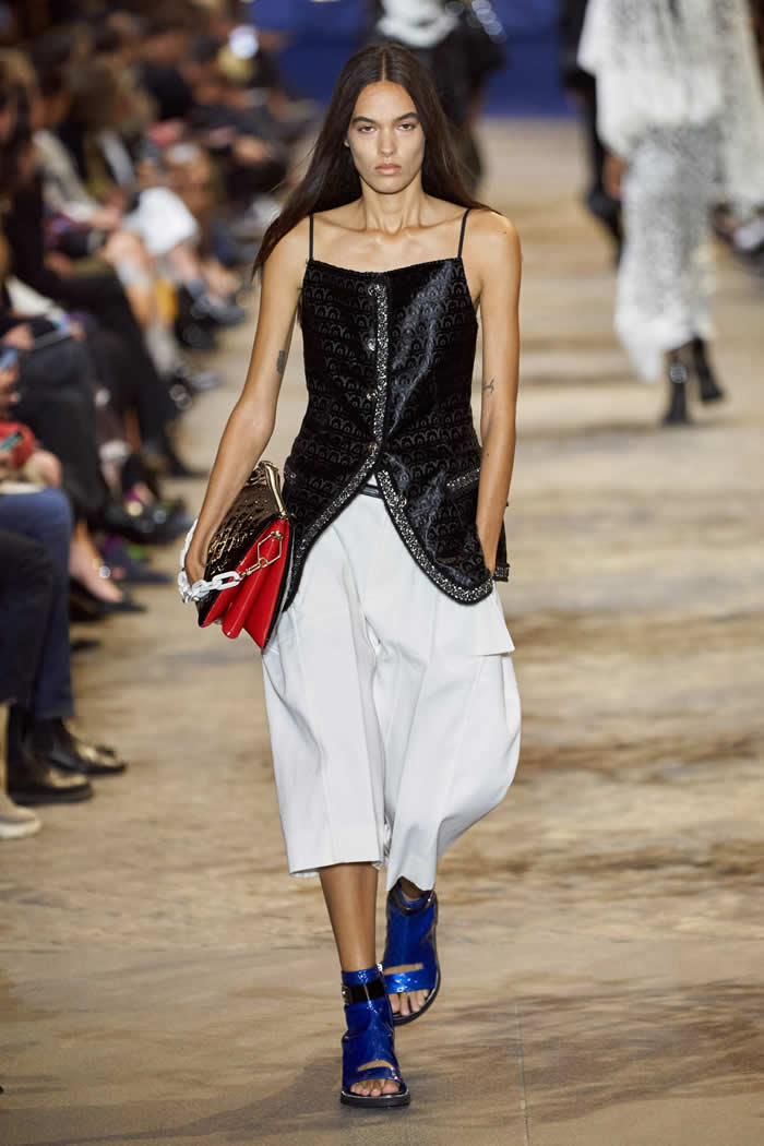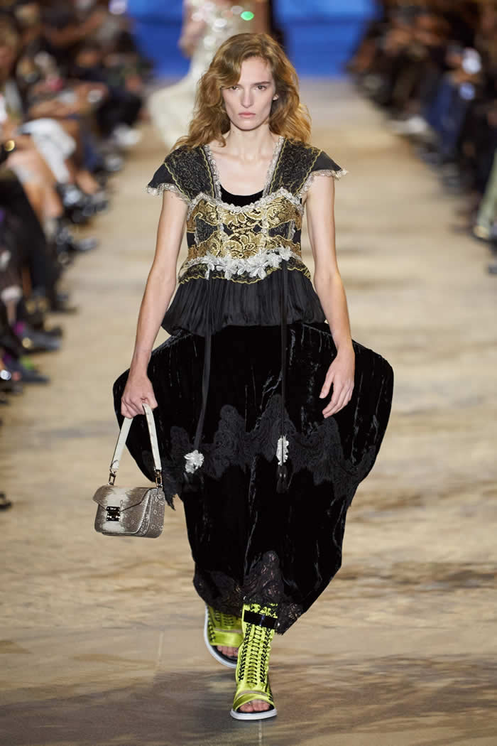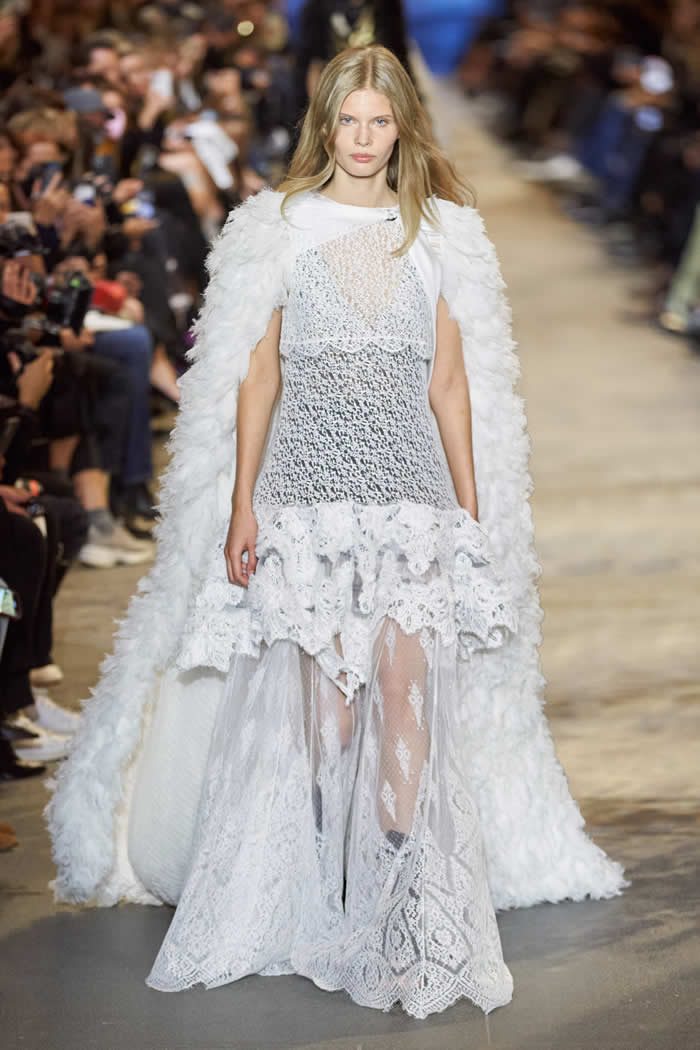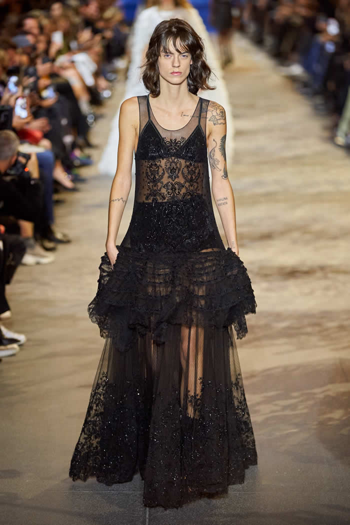 This season, the designer was back at the Louvre museum with a spectacular history-mashing display, transforming the Passage de Richelieu into a ballroom with mirrored panels reflecting the light of 120 vintage chandeliers, and a vampire-chic collection inspired by brand ambassador Alicia Vikander’s new HBO series.