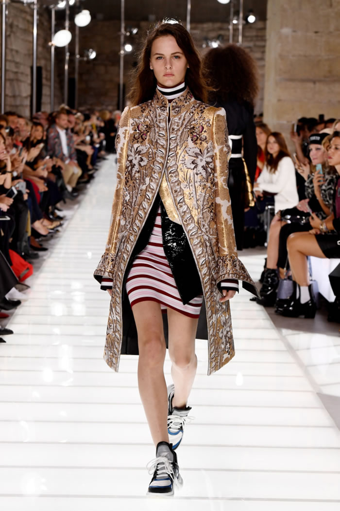 Nicolas Ghesquiere delivered a powerful collection that blended his signature sportswear with 18th century costume references.