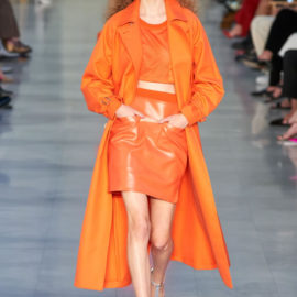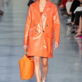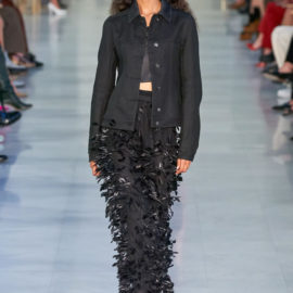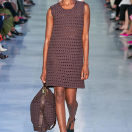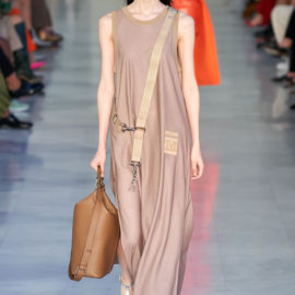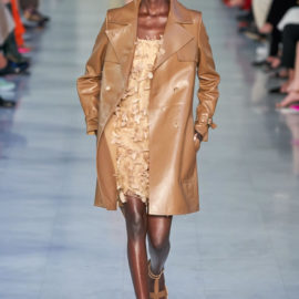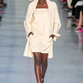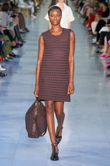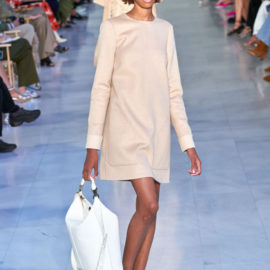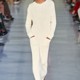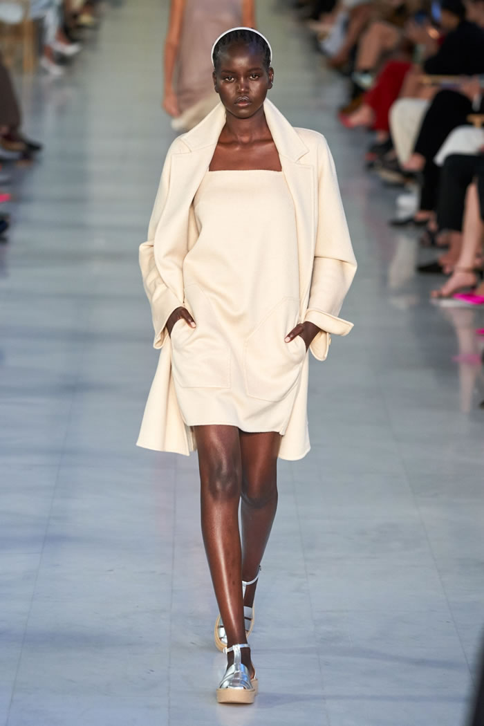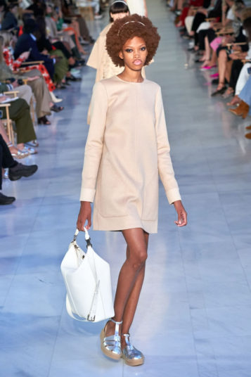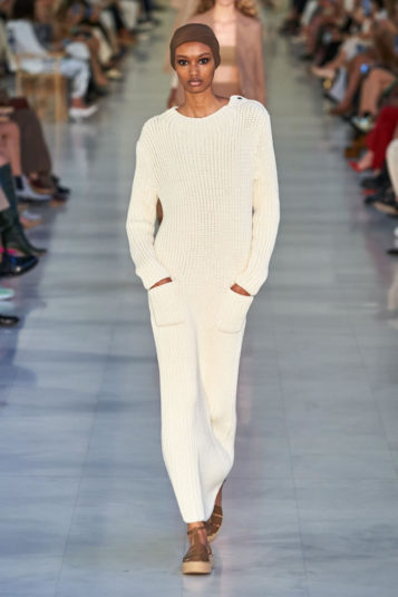 Max Mara is known for its excellent Italian-made outerwear. That hasn’t changed, but the double-face cashmere that opened the show was shorter and swingier than usual, and the double-face cashmere dresses that accompanied them were essentially aprons, with big patch pockets included, instead of the standard-issue sheaths.