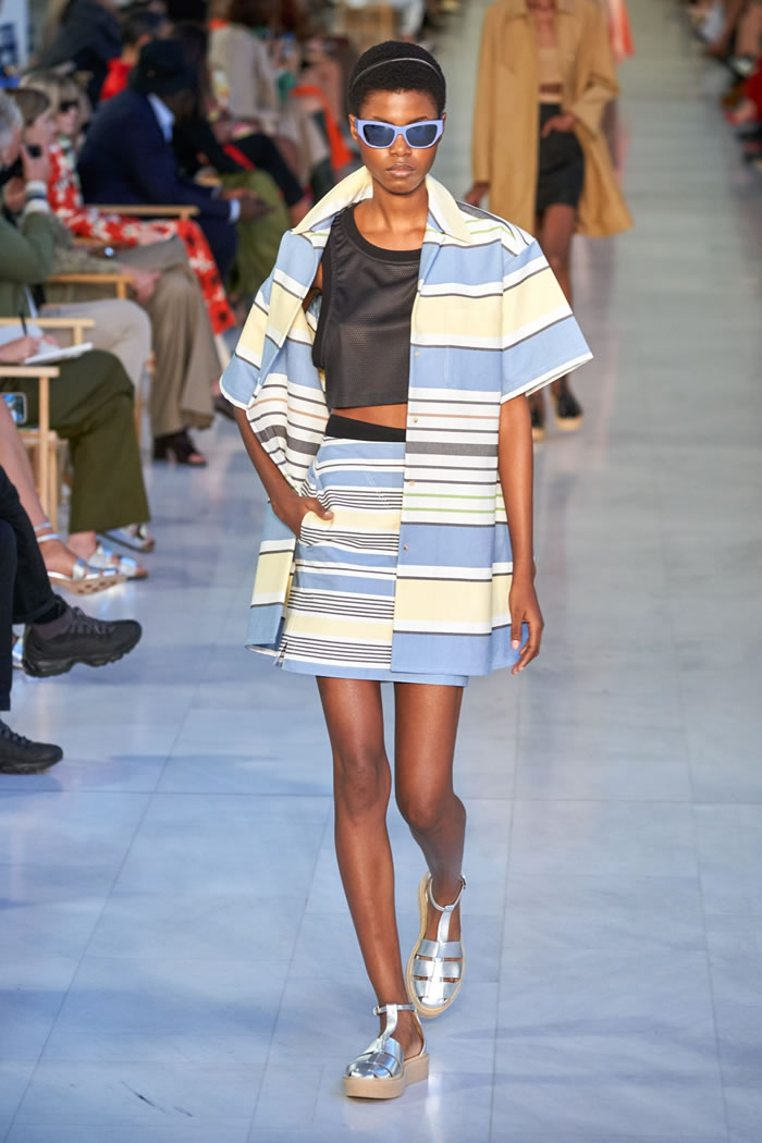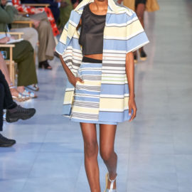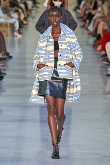 All in all, the collection had a sturdy sense of chic well-judged for the present moment, the denim separates and pieces in the graphic lawn-chair stripes especially.