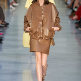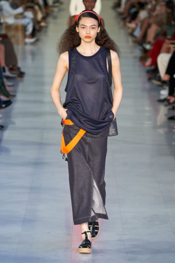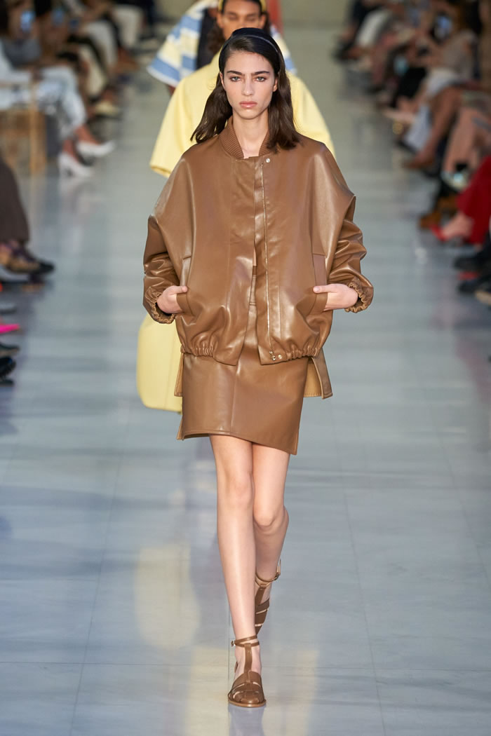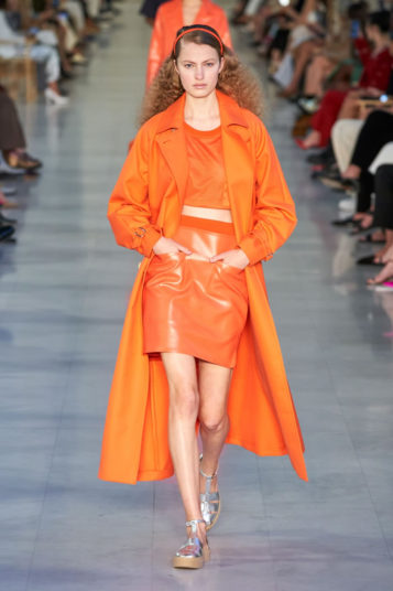 On many of the looks, simple bandeaux in colors or materials that matched the jackets and skirts they were worn withstood in for more classic shirts. If underwear as outerwear seems more bohemian than feels authentic to Max Mara, the label is not alone in its embrace of the trend; bra tops are an obvious symbol of fashion’s turn for the casual.