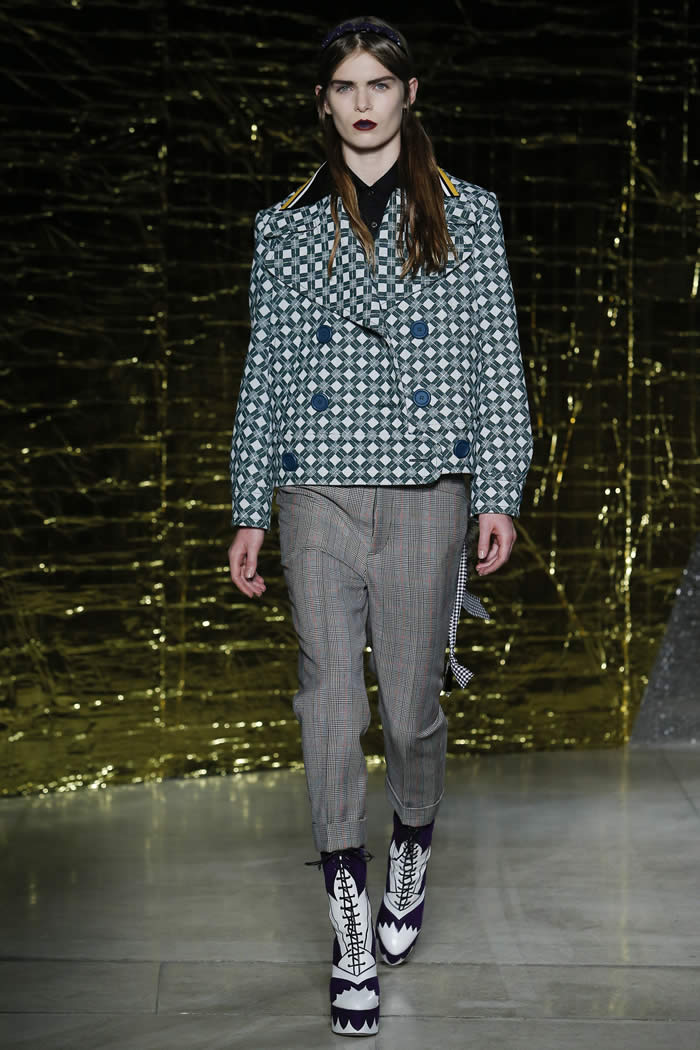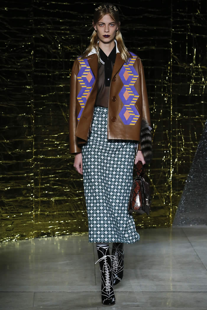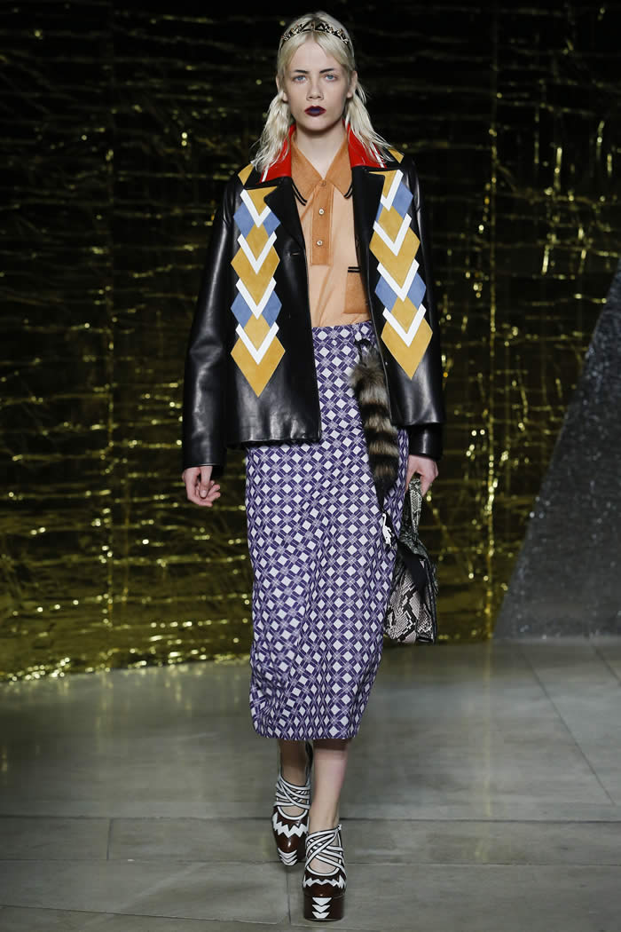 At the risk of stating the obvious, Miuccia Prada declared backstage after her Miu Miu Spring 2016 RTW Collection that “the world is becoming very irrational.” Without getting specific, she acknowledged that such a statement is more complicated than anything that can be expressed on a runway. But she still sideswiped at frustration with a great collection about underground culture, protest and escape. “We all want to go beyond what’s happening,” said Prada.