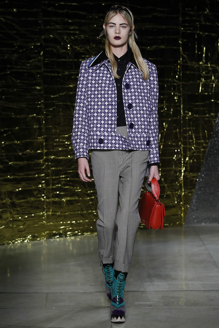 At the risk of stating the obvious, Miuccia Prada declared backstage after her Miu Miu Spring 2016 RTW Collection that “the world is becoming very irrational.” Without getting specific, she acknowledged that such a statement is more complicated than anything that can be expressed on a runway. But she still sideswiped at frustration with a great collection about underground culture, protest and escape. “We all want to go beyond what’s happening,” said Prada.