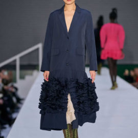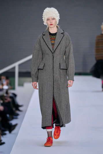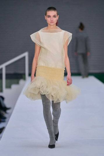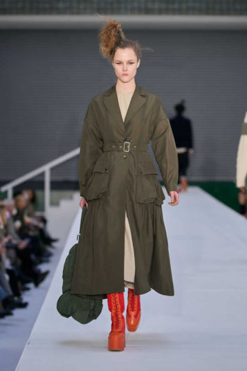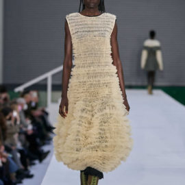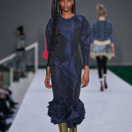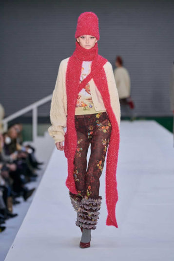 In other words: still true to Molly Goddard customers who apparently can never get enough of her ruffly net party dresses, but this time with more in the way of sensible outerwear to combat the weather in the streets—and, come to think of it, plenty of cozy layers which could be very handy to stock up on in anticipation of enduring the next British winter with the heating turned off.