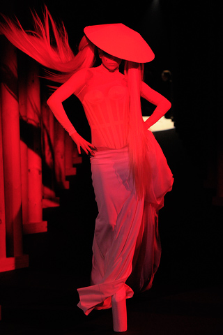 Mugler’s ready-to-wear fall collection 2011 at Paris Fashion Week seemed a reminiscent of Lady Gaga’s wacky fashion aesthetics, with all the bloody skinny animals, witches and sheer sexual motifs, I must say this is not creativity, this is insanity!