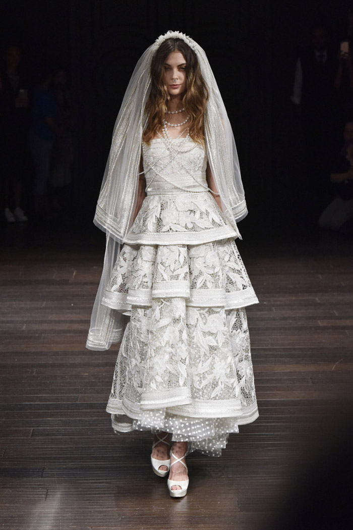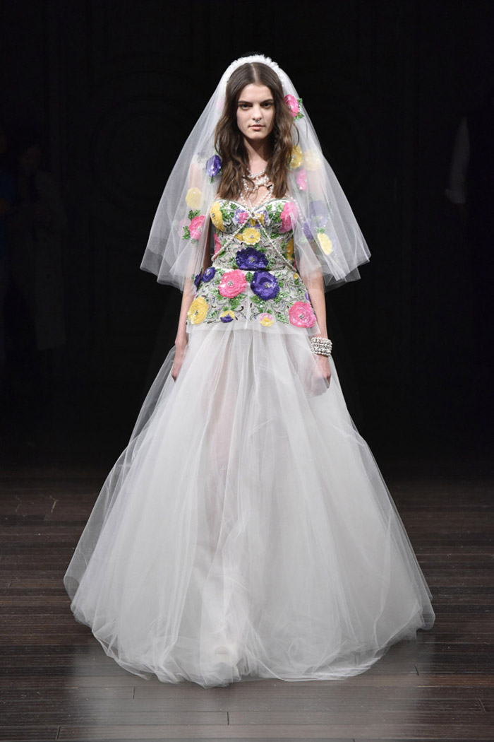 The designer gave his bride a chance to show her adventurous side, with unique silhouettes, some harkening back to the flapper era.